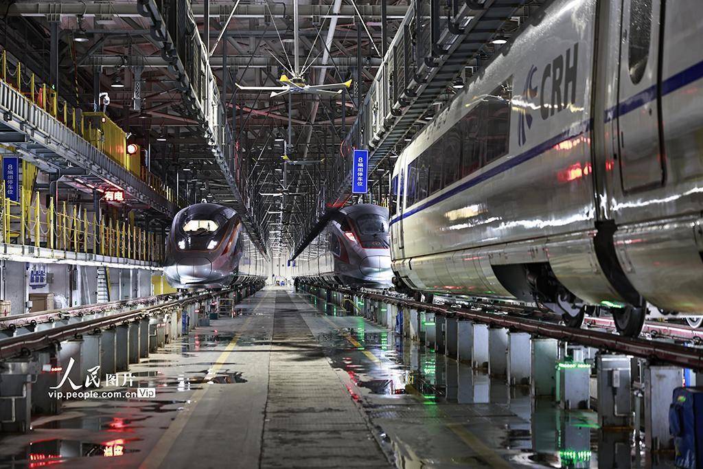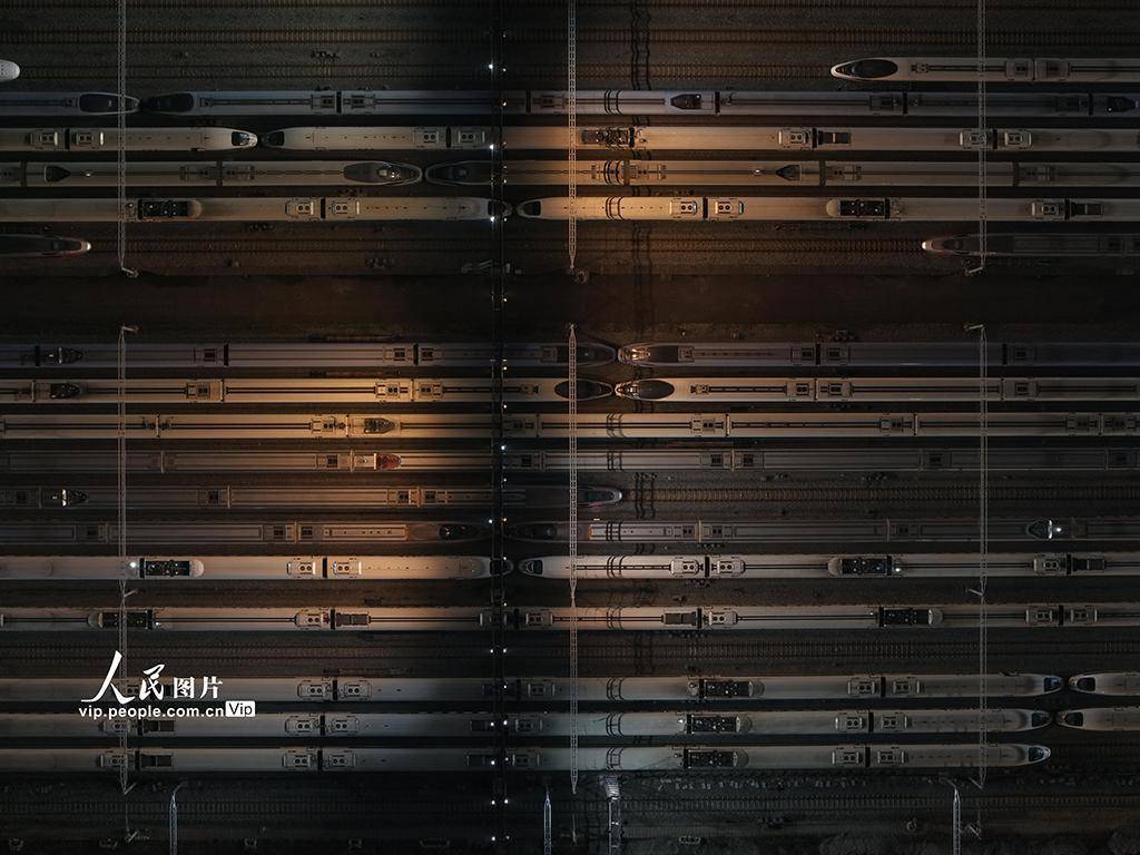 春运期间,重庆车辆段每日图定上线109组,高峰期上线137组,动车组可支配上线率达100%。同时,新增直通临客交路30对,主要开行北京、上海、广州等方向,并增加日高峰交路2个,由重联车组担当开往佛山西方向,在节前6天、节后7天加开上海、广州等方向夜高峰交路29个,为旅客出行提供充足运力。苏志刚摄(人民图片网)